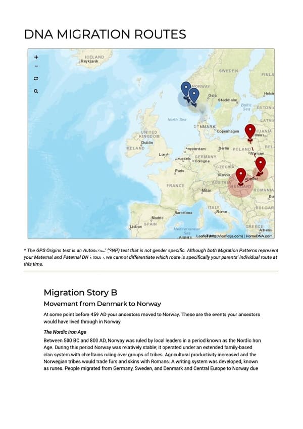 Der Bericht enthält eine Karte, die die geografische Verteilung Ihrer Vorfahren in Prozent und ihre Migrationsrouten in den letzten 1.000 Jahren zeigt. Außerdem erhalten Sie Zugang zu historischen Erläuterungen über ihre Ansiedlung in verschiedenen Regionen.