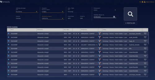 Heredis nutzt auch Daten von bestimmten Benutzern und Genealogie-Vereinigungen, die ihre Daten freiwillig mit der Gruppe geteilt haben. Durch einfache Eingabe eines Nachnamens können Sie auf zuverlässige Daten zugreifen, um die Lücken in Ihrem Stammbaum zu füllen. In unserer vollständigen Rezension zu Heredis erfahren Sie mehr über die Funktionen des Programms.