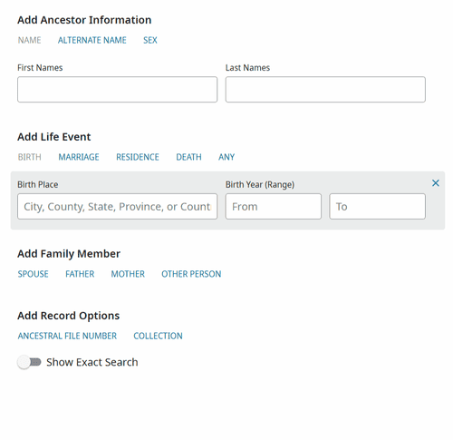 FamilySearch ist eine völlig kostenlose Plattform, die Zugang zu Milliarden von genealogischen Aufzeichnungen aus über 100 Ländern bietet. Wenn Sie die Suchmaschine mit einem Nachnamen verwenden, können Sie eine Fülle wertvoller Quellen erkunden: